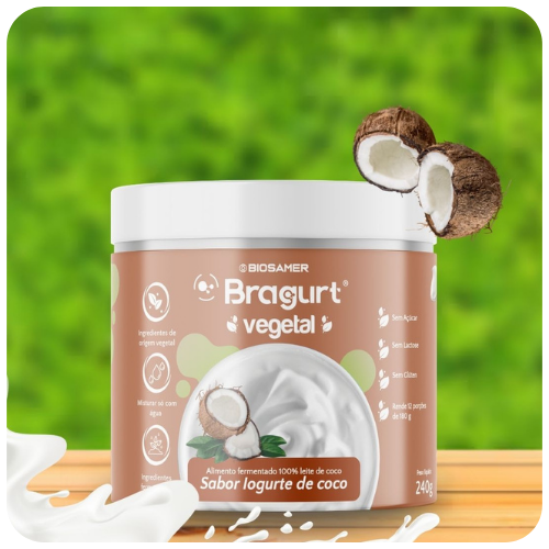 Saboroso alimento vegano fermentado em pó 100% vegetal em base do leite de coco, sem sucralose e sem soja. Se você gosta do iogurte, mas você não come lácteos, do Bragurt vegetal você vai gostar! O produto é fermentado com microrganismos. Além disso, o Bragurt Vegetal contêm Vitamina B12.