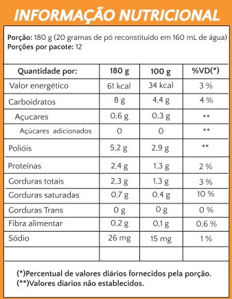 Para o preparo, só precisa adicionar 2 colher de sopa do produto a 160mL da água a temperatura ambiente, mexer e pronto! Se quiser uma textura mais cremosa, levar na geladeira por 30 minutos e vai obter uma textura similar ao iogurte.